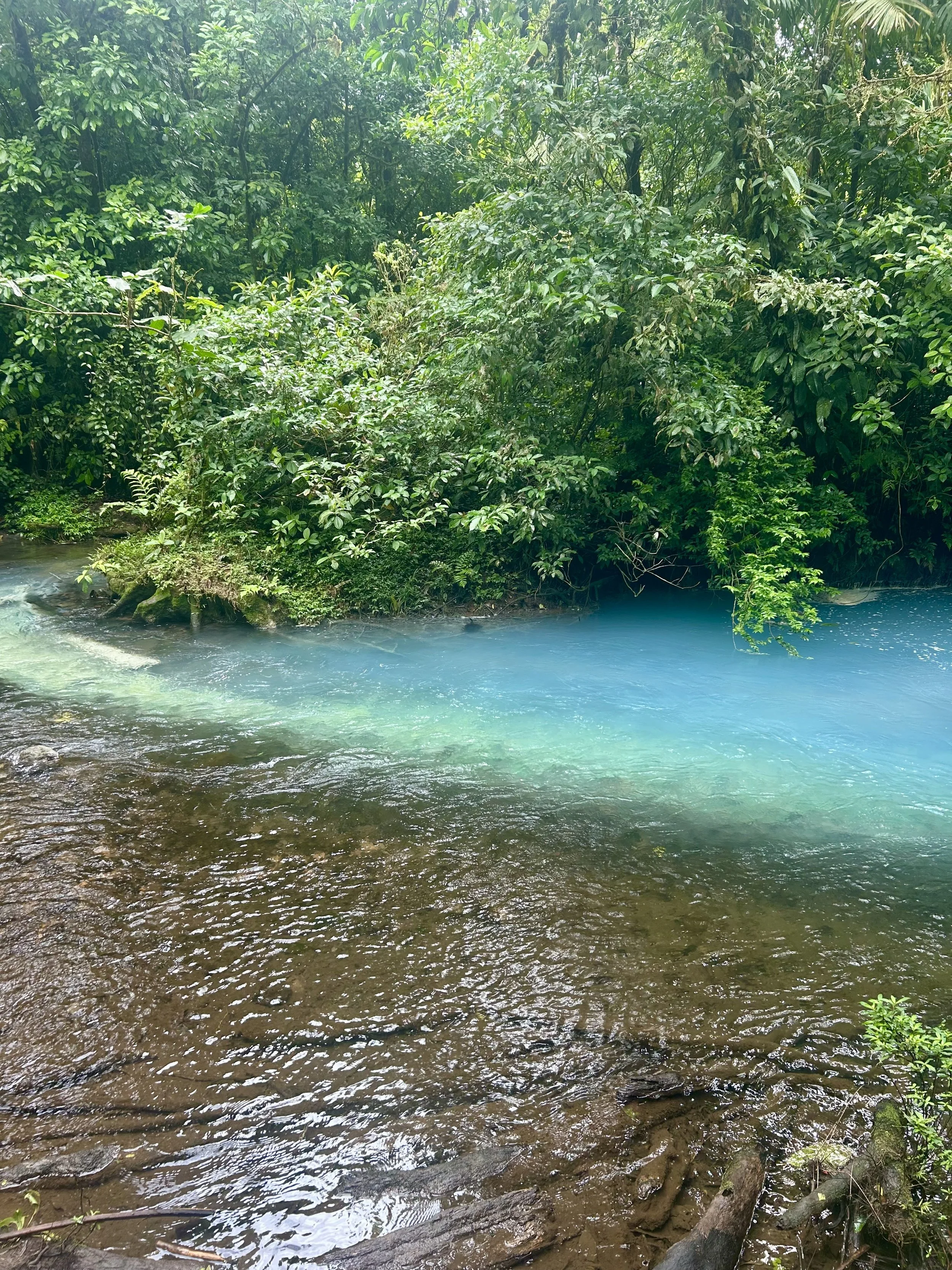 Located 1.5 hours from La Fortuna is the Rio Celeste Waterfall located inside of Tenorio Volcano National Park. The local legend is that when God was making the Earth, he dipped his paintbrush in the river after painting the sky which turned the water bright blue.